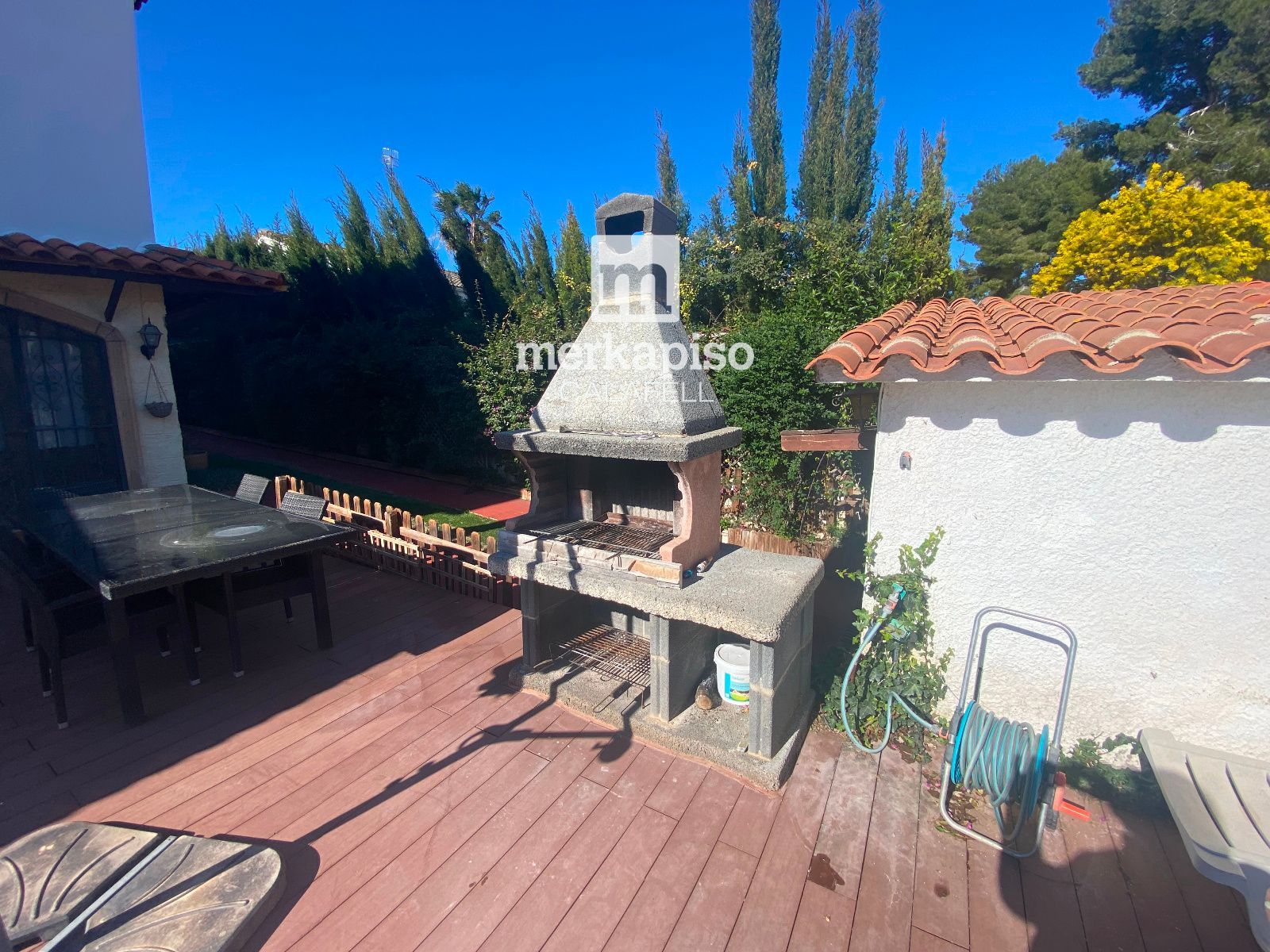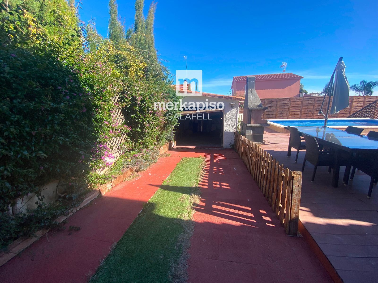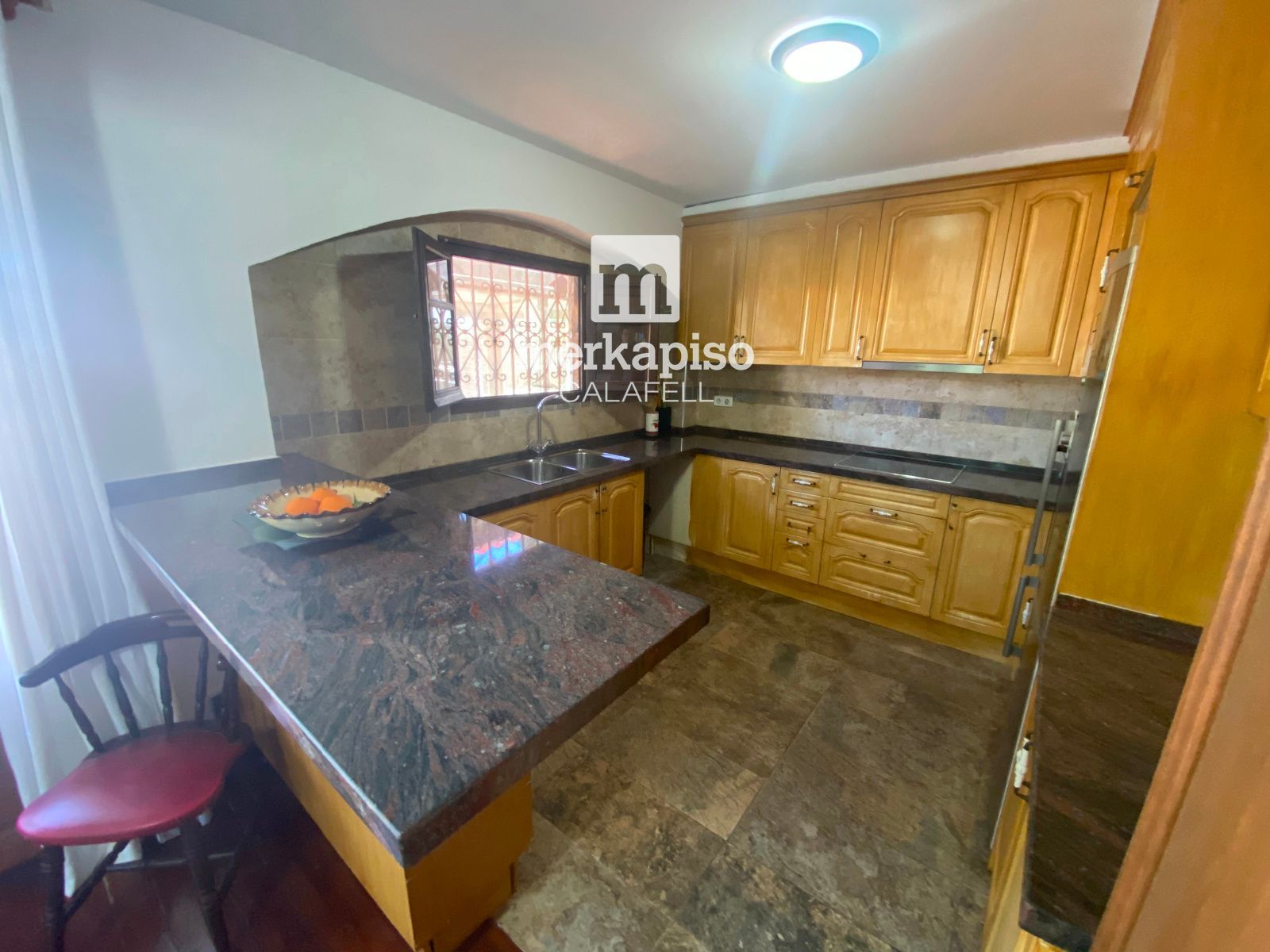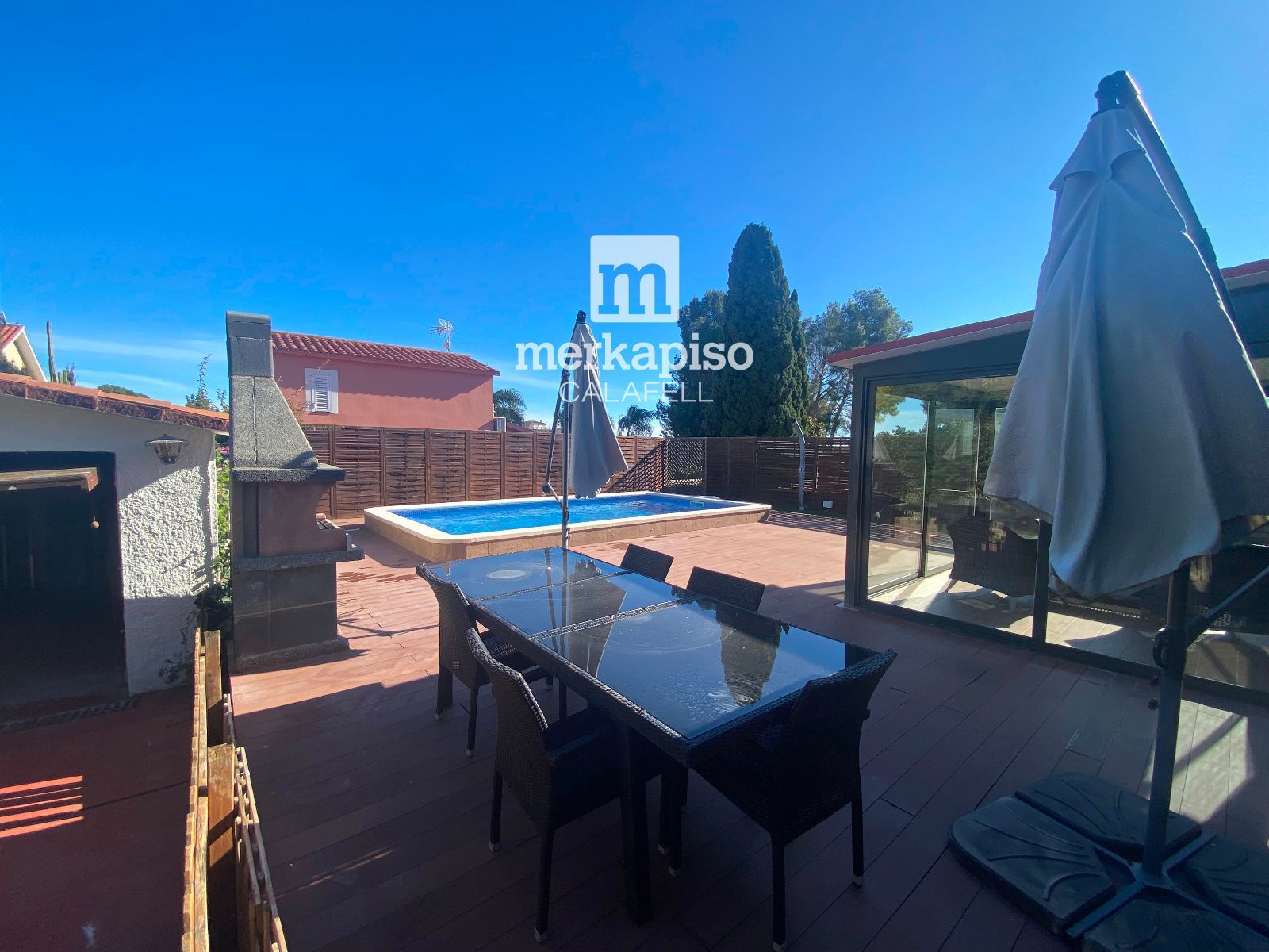La cocina ABIERTA al comedor, amplia y práctica, conecta directamente con la zona exterior, permitiendo un acceso cómodo y fluido al jardín y a la zona de piscina, un espacio perfecto para disfrutar del clima mediterráneo, reuniones al aire libre y momentos de relax.
