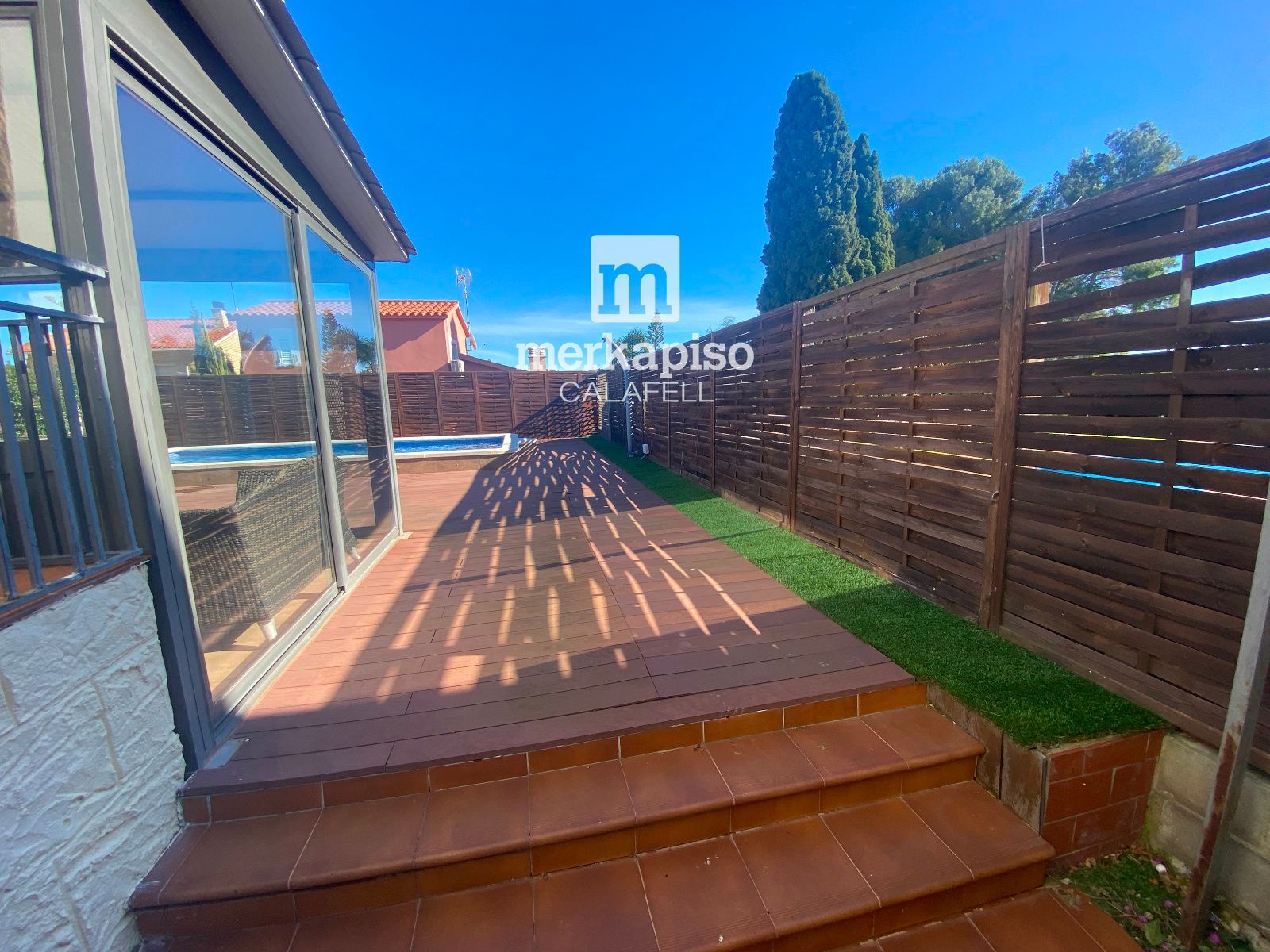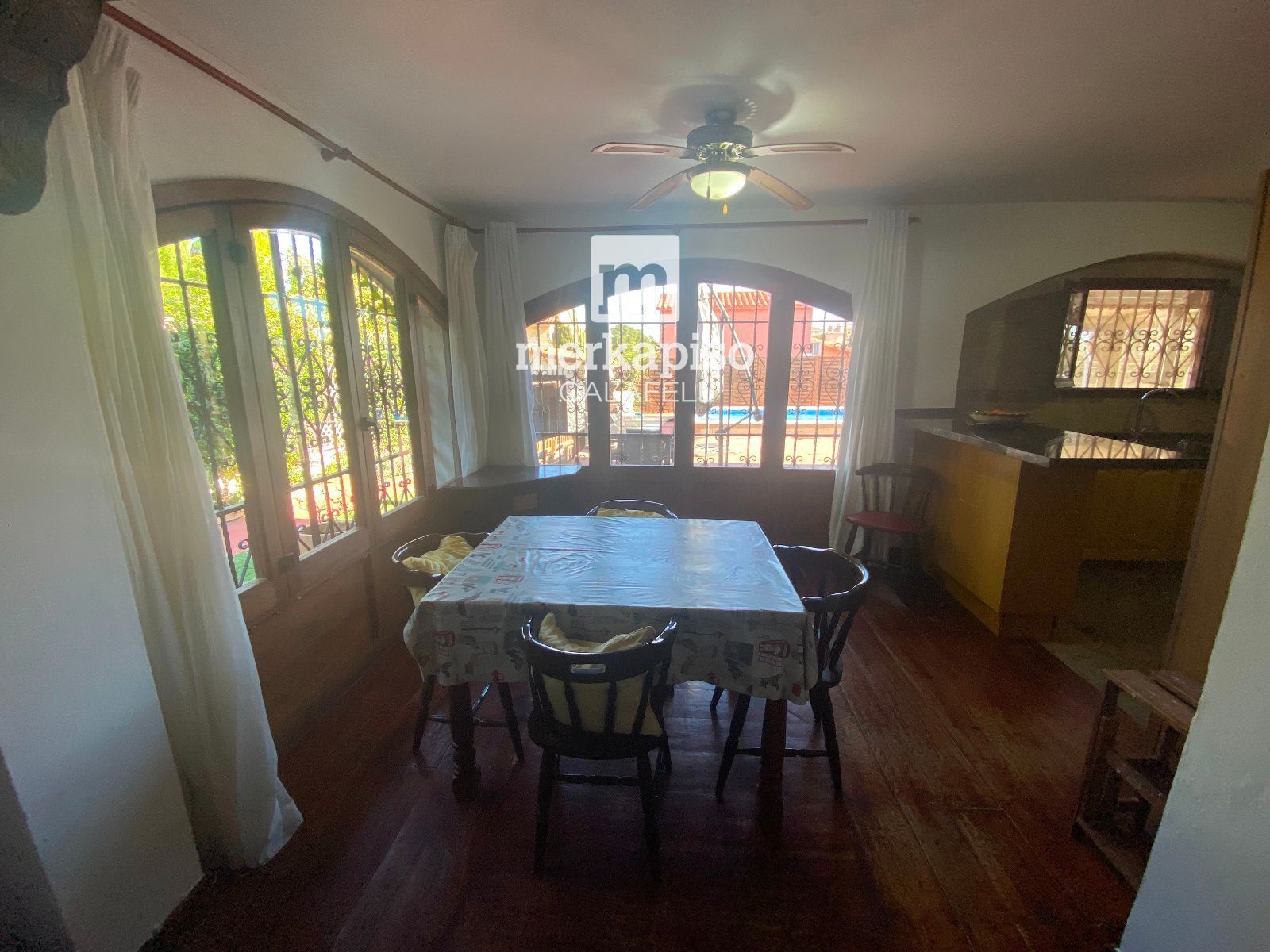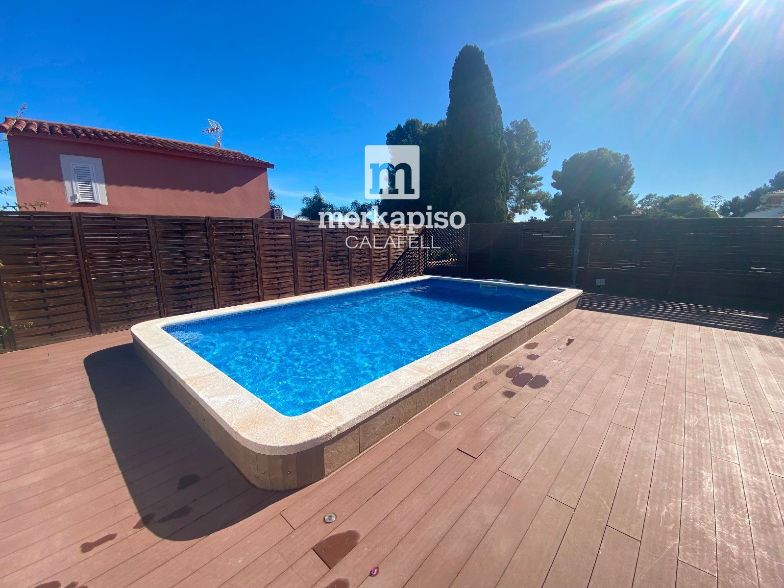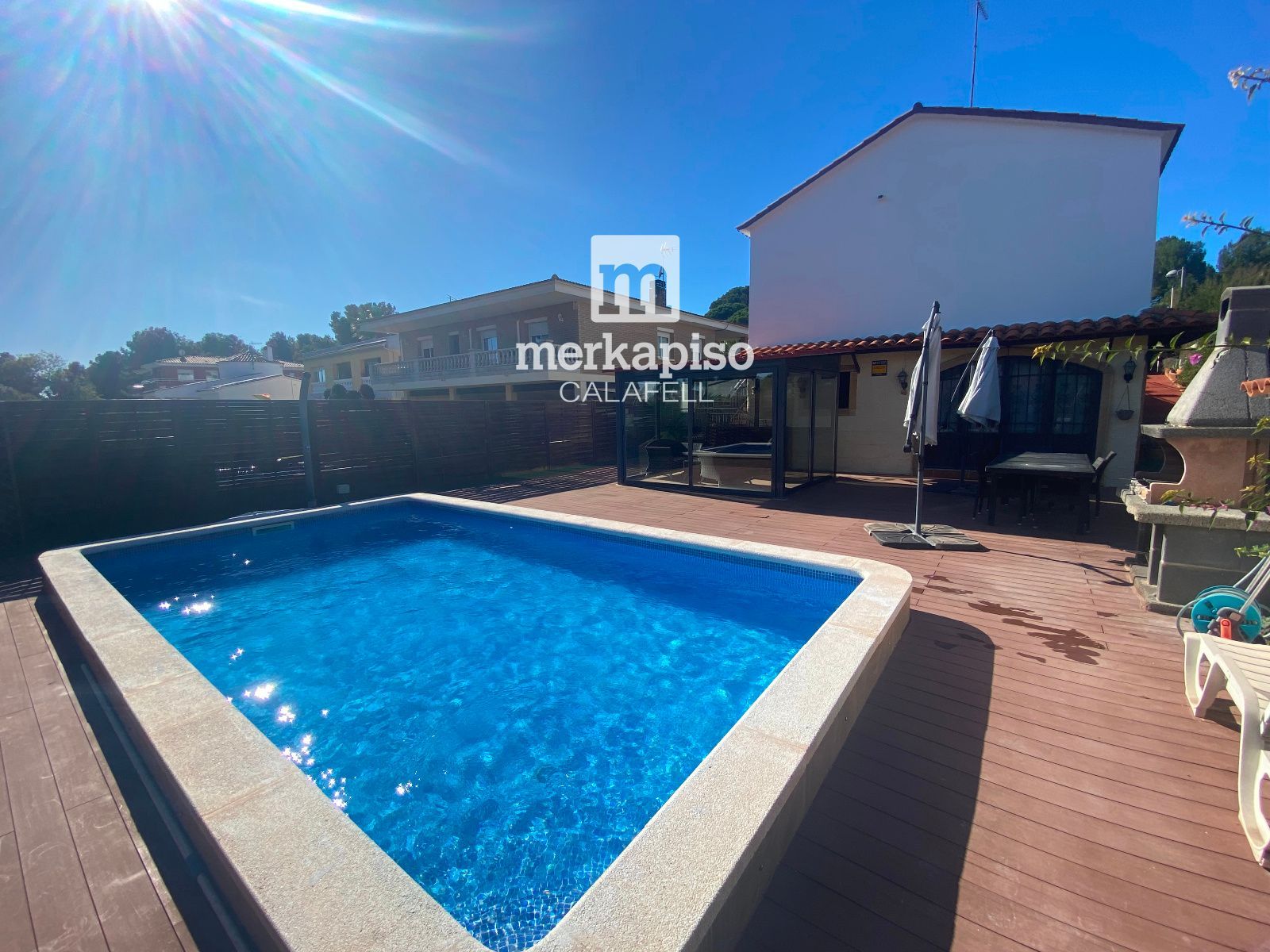La cocina ABIERTA al comedor, amplia y práctica, conecta directamente con la zona exterior, permitiendo un acceso cómodo y fluido al jardín y a la zona de piscina, un espacio perfecto para disfrutar del clima mediterráneo, reuniones al aire libre y momentos de relax.