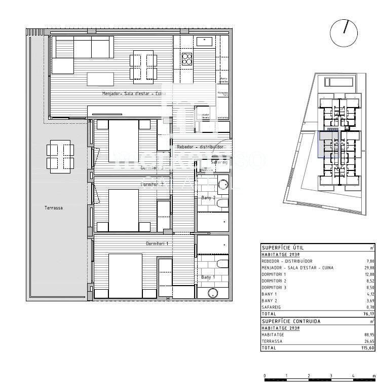 Si desea vivir en un entorno privilegiado cerca de todos los servicios no deje escapar esta oportunidad venga a visitar esta nueva construcción de un edificio plurifamiliar compuesto por 24 viviendas situado en la localidad de Cunit. .Este bloque de nueva construcción ha sido diseñado con un enfoque en la elegancia moderna. Cada piso ha sido meticulosamente diseñado para maximizar el espacio y la luz, creando un ambiente acogedor y atractivo y con los más altos estándares de calidad. Desde los acabados interiores hasta los electrodomésticos de alta gama, como cada pequeño detalle, garantizando la máxima satisfacción para del propietario..Con una superficie construida total de 115,60 m2 de vivienda, y 88,95 m2 construidos interior de vivienda se encuentra distribuidos 3 amplias habitaciones (1 de ellas suitte), salón comedor con cocina americana de 31,43 m2 totalmente equipada con todos los electrodomésticos, 2 baños completos, 1 lavadero con los electrodomésticos integrados de lavadora y secadora marca BALAY, recibidor, terraza de 26,65 m2, suelos porcelanamicos en toda la vivienda, carpintería exterior de aluminio de color gris claro de perfil eficiente y con rotura de puente térmico, carpintería interior con puertas correderas lacadas en blanco..Además, contamos con zona comunitaria con piscina, ascensor y plazas de parking opcionales. .El entorno y municipio:.Cunit se encuentra situado en la comarca del Bajo Penedés y en la provincia de Tarragona aunque está incluido en la tercera corona de la región urbana de Barcelona. Limita con Segur de Calafell (localidad del municipio de Calafell), de la misma comarca, así como con Cubellas, en la comarca del Garraf, y Castellet y Gornal, en la comarca del Alto Penedés, ambos de la provincia de Barcelona..Su paisaje es típicamente mediterráneo, desde los 2,5 km de playas de arena fina, protegidas por los espigones que le proporciona sus formas semicirculares características, pasando por las planicies agrícolas (denominadas Prats de Cunit i Plana del Castell) hasta las sierras del centro (Sierra de Sant Antoni) y norte del municipio, siendo parte de las últimas montañas de la sierra litoral catalana...